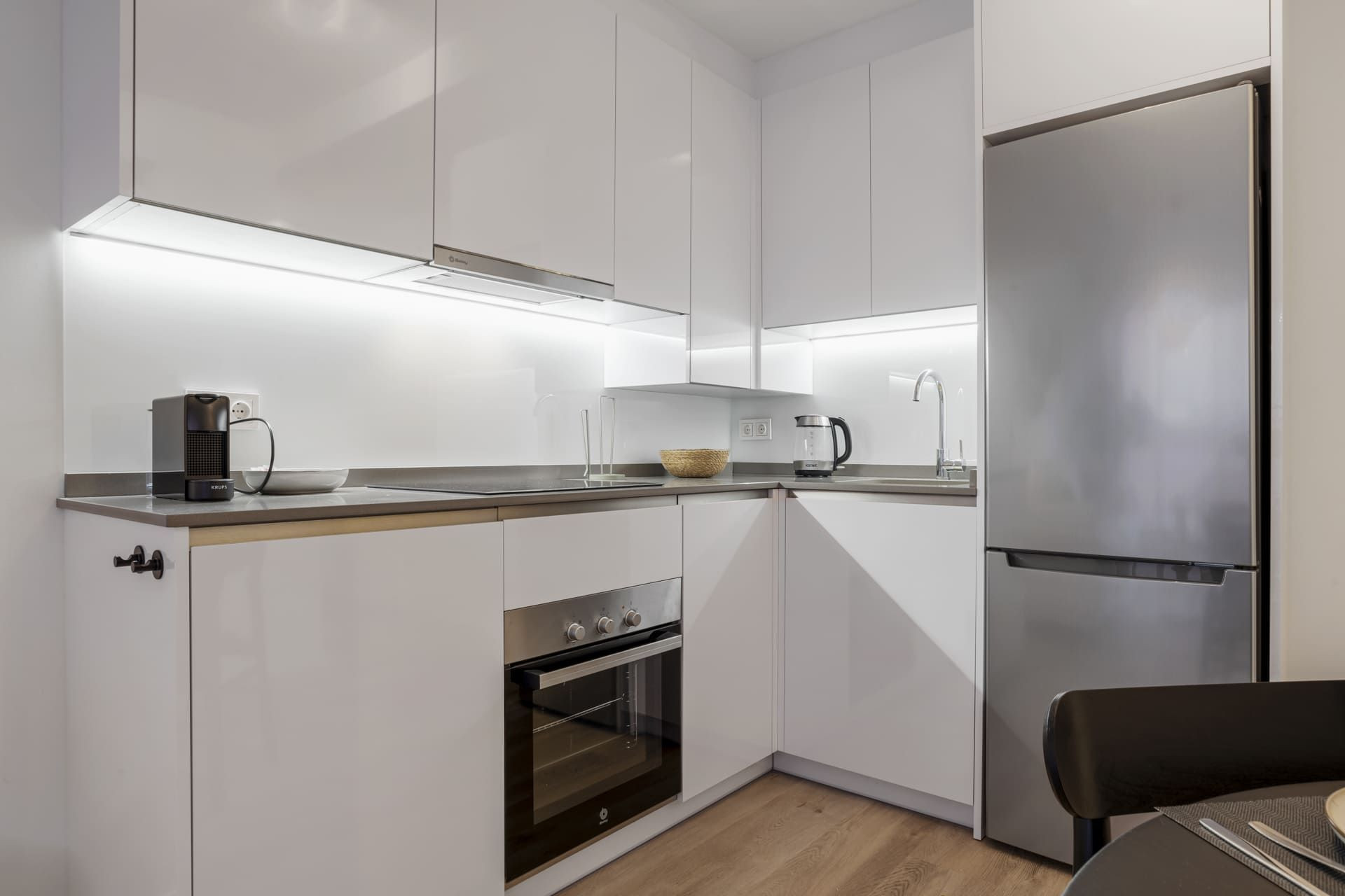 La cocina americana, de inducción, está equipada con nevera, microondas, horno, congelador, vajilla/cubertería, utensilios/cocina, cafetera, tostadora y hervidor de agua.