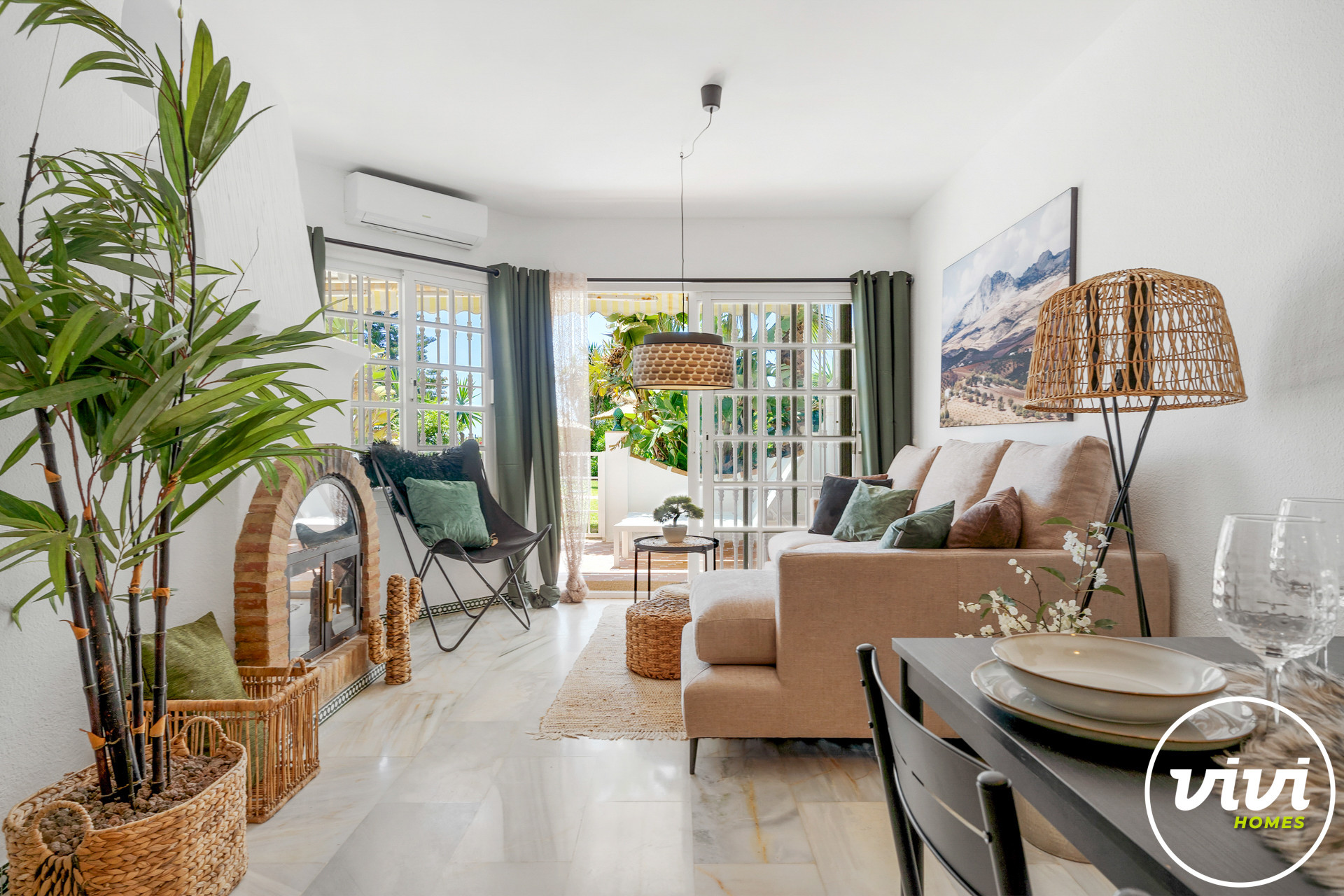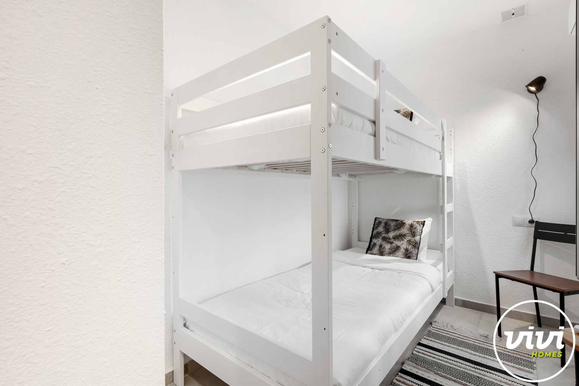 Dispone de jardín, mobiliario jardín, parcela vallada, 25 m² de terraza, lavadora, barbacoa, plancha, secador, calefacción central, aire acondicionado en todo el alojamiento, piscina comunitaria, parking aire libre en edificio cercano.