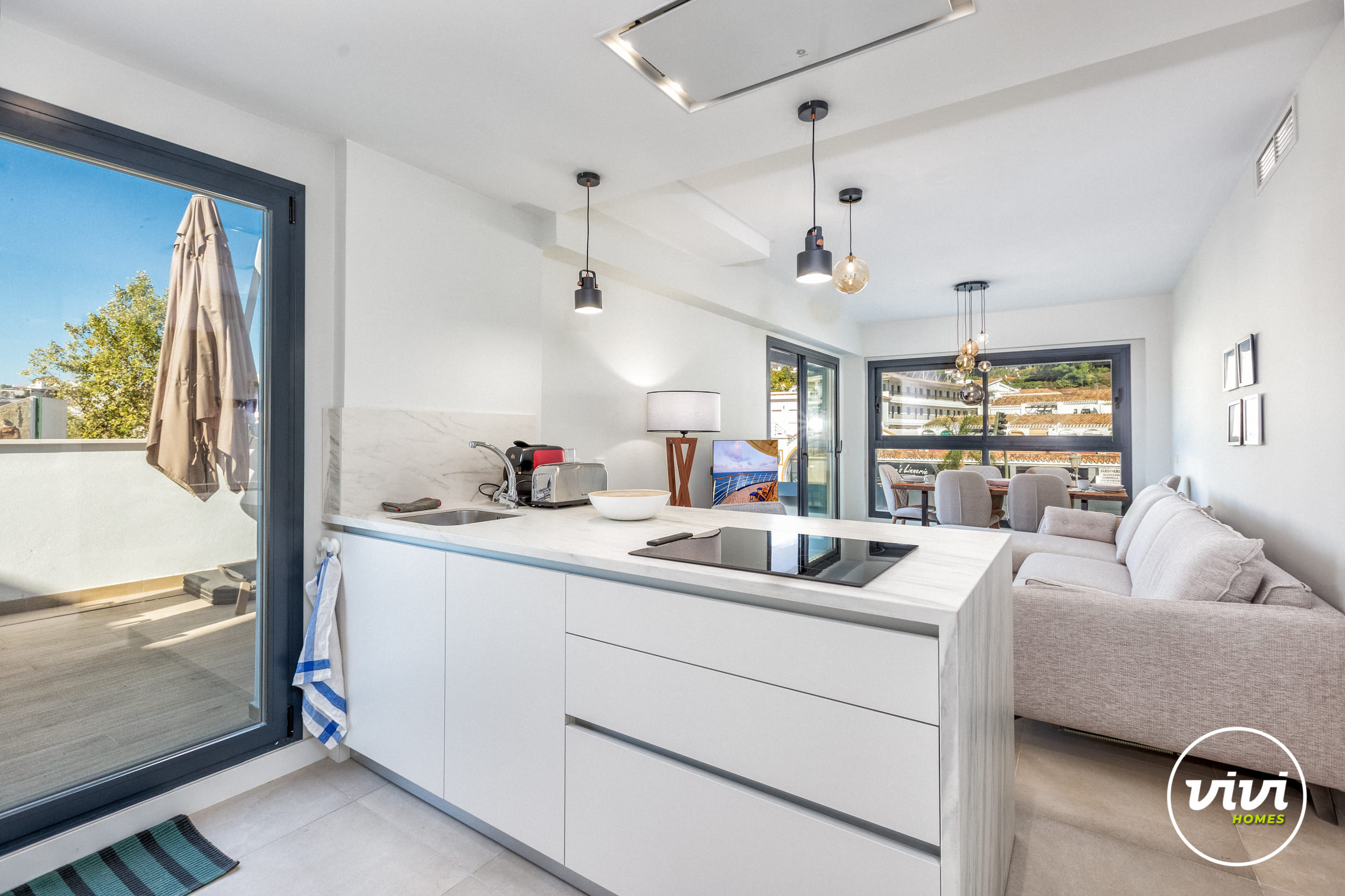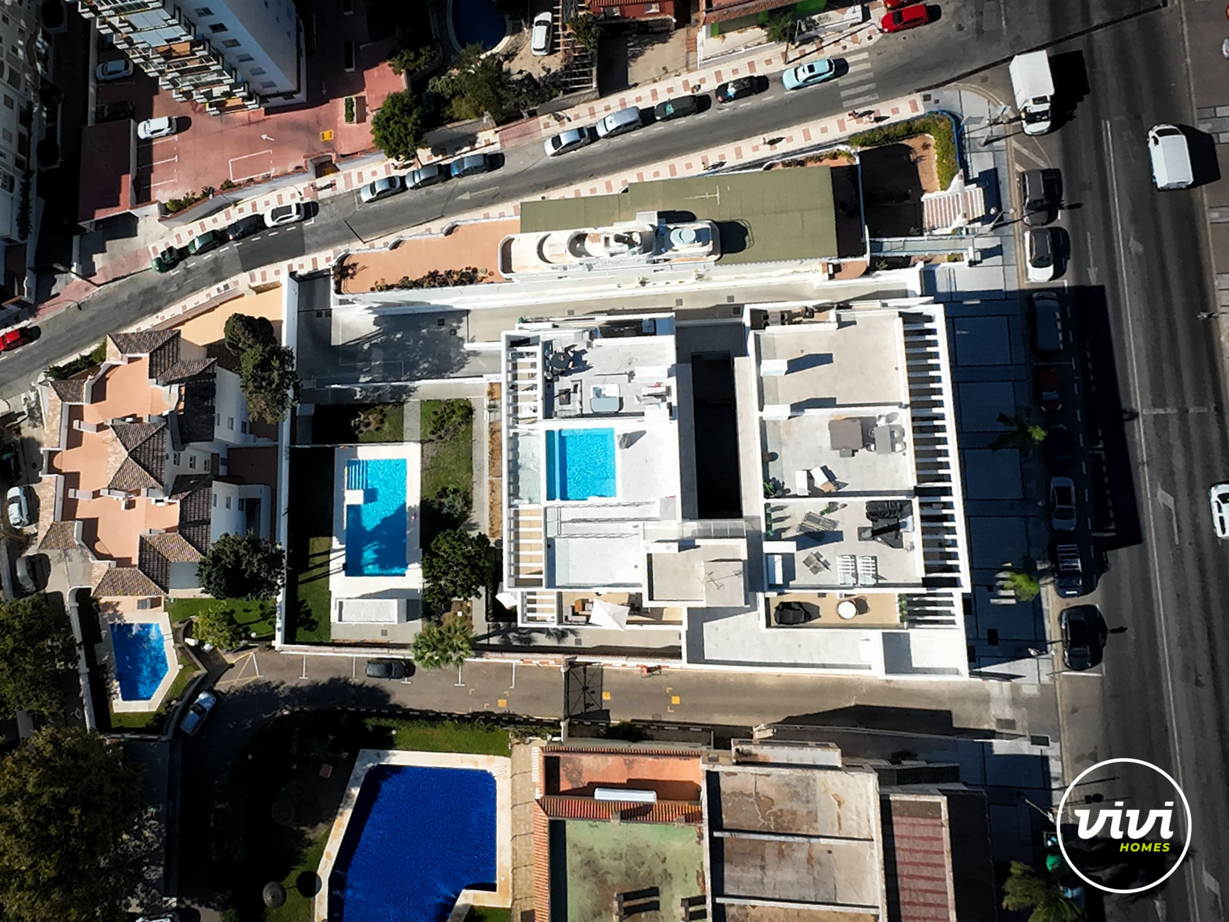 Dispone de ascensor, jardín, parcela vallada, 35 m² de terraza, secador, calefacción bomba de calor, aire acondicionado en todo el alojamiento, piscina comunitaria, garaje en mismo edificio, Televisión.