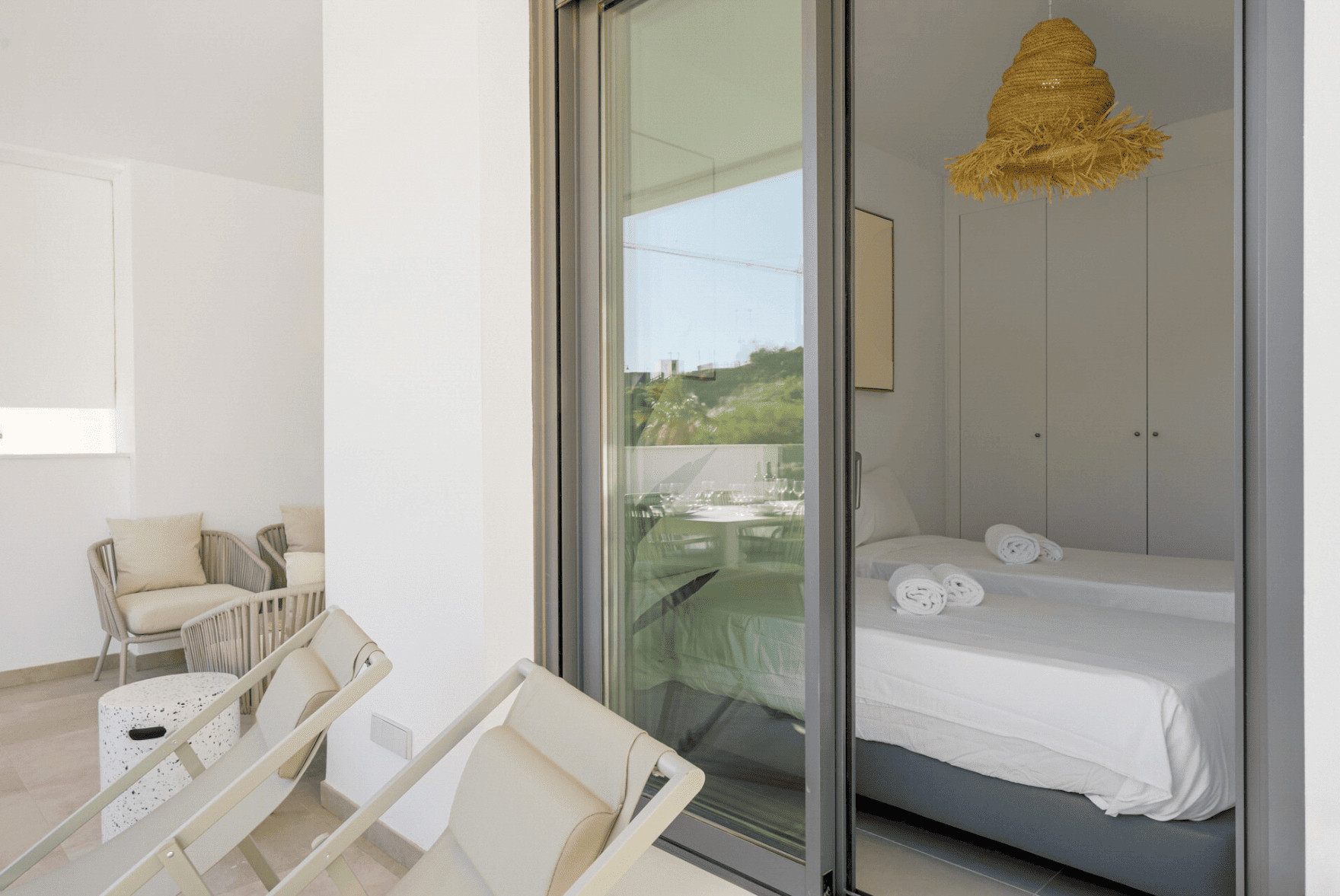 Anemona está preparada para alojar a 4 huéspedes, en dos dormitorios con dos baños. Tendrás una acogedora sala de estar con muebles cómodos y un televisor inteligente, perfecto para relajarte después de un largo día. También dispondrás de una cocina totalmente equipada para preparar tus comidas favoritas.