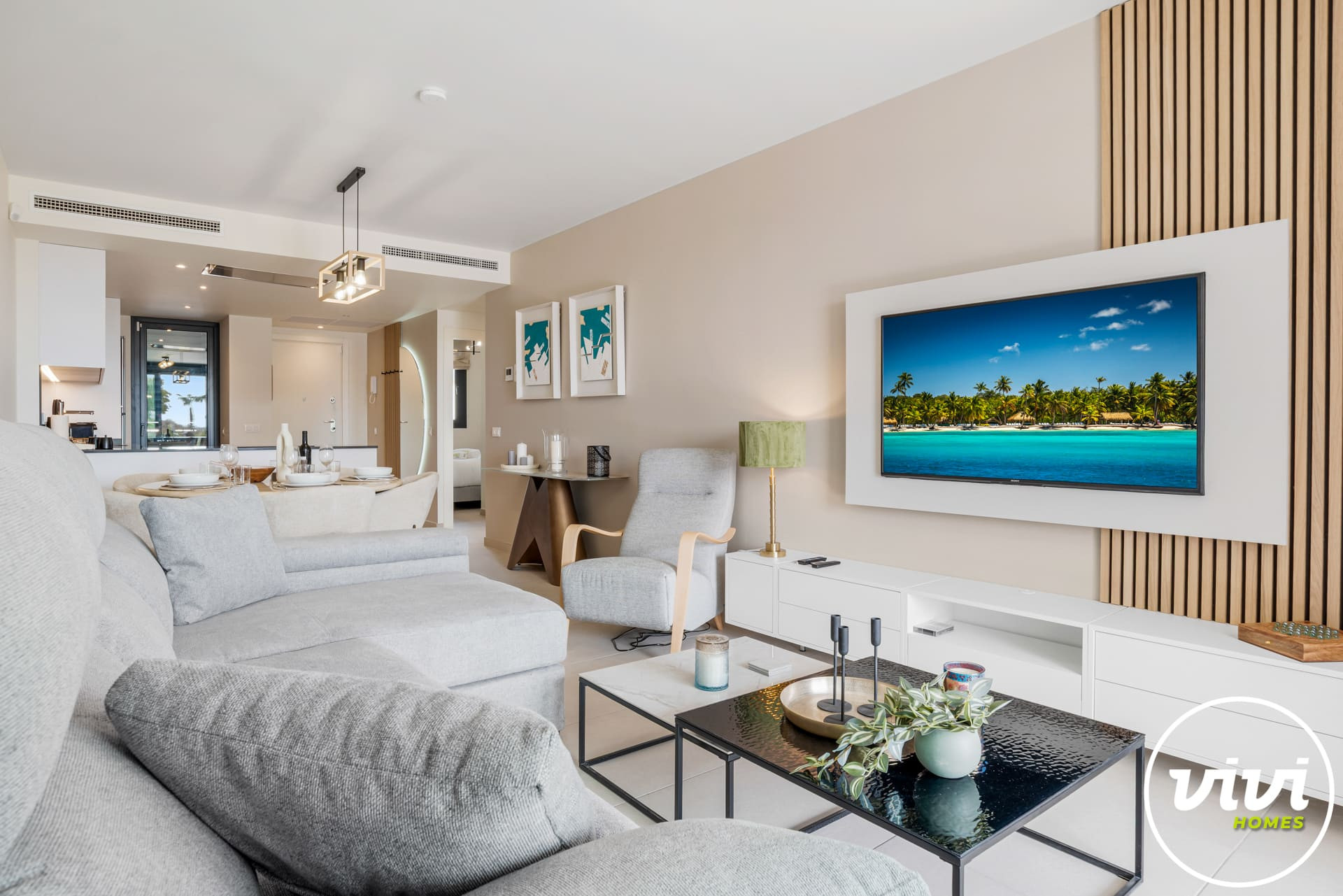 Bienvenido a este luminoso y moderno apartamento de 2 dormitorios, cuidadosamente diseñado para alojar cómodamente hasta 5 huéspedes, perfecto para familias o un grupo de amigos.