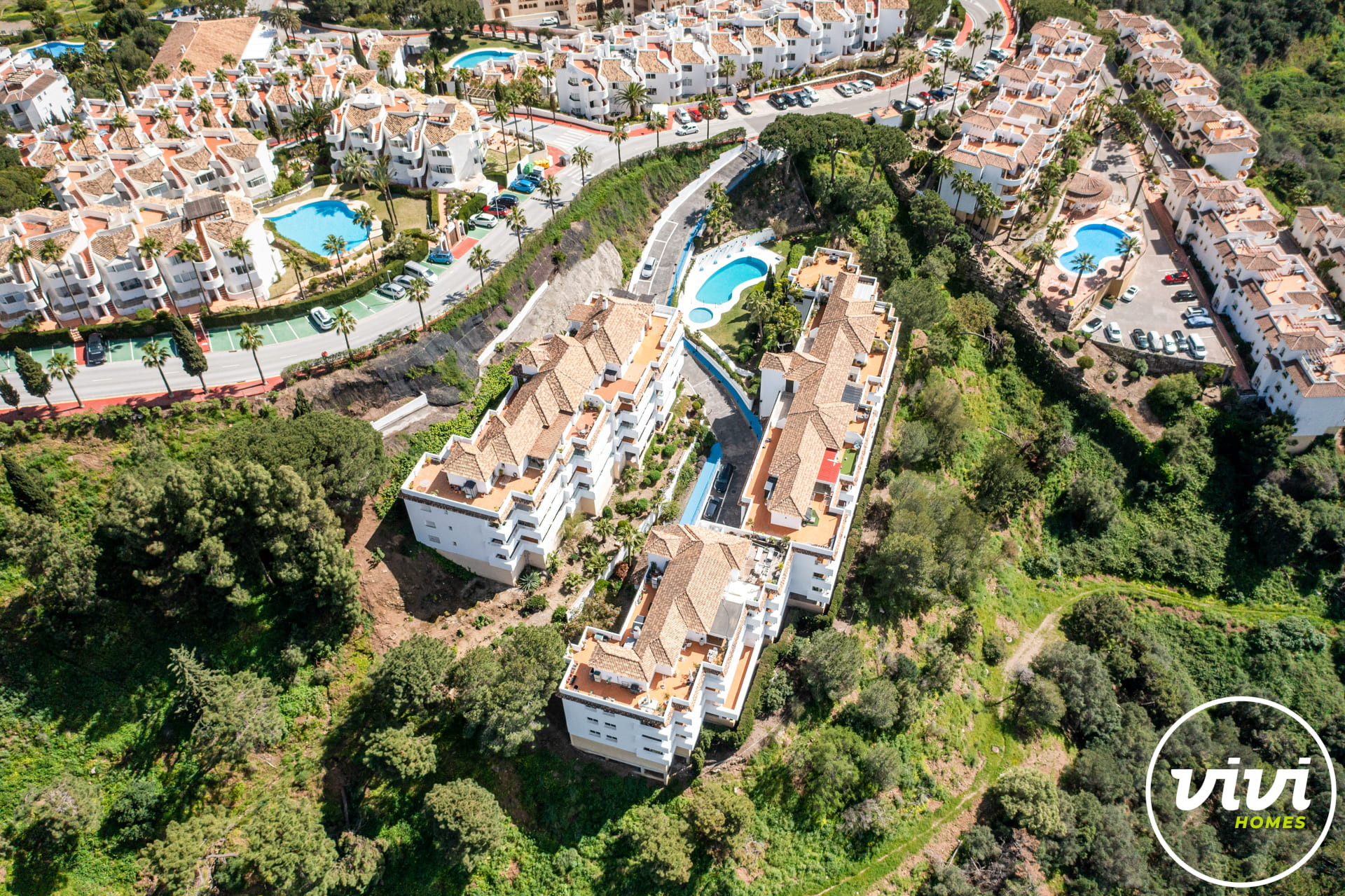 Disfruta del lado más suave de la Costa del Sol desde la hermosa terraza, con una vista panorámica tanto del Mar Mediterráneo como de las montañas circundantes, donde podrás relajarte bajo la cálida luz otoñal y disfrutar del entorno tranquilo.