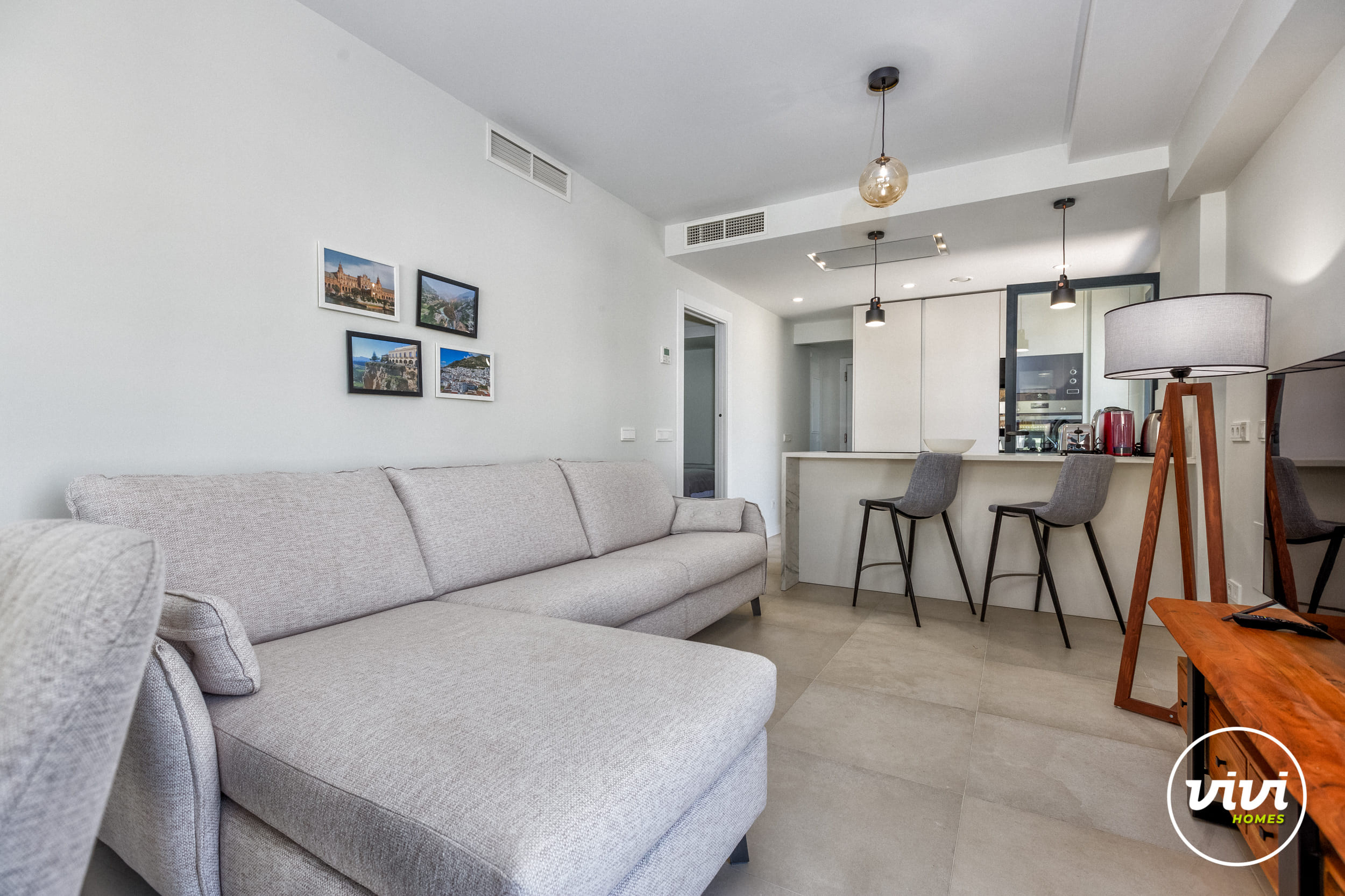 Gracias a su ubicación y espacios abiertos, el apartamento está lleno de luz natural durante todo el día, creando una atmósfera cálida y acogedora. En su interior, encontrará dormitorios acogedores, junto con una sala de estar confortable que es perfecta para relajarse después de un día fuera. La cocina es muy moderna y está completamente equipada. La terraza cuenta con una gran zona de asientos para que usted y sus amigos o familia puedan disfrutar de una bebida con vistas.