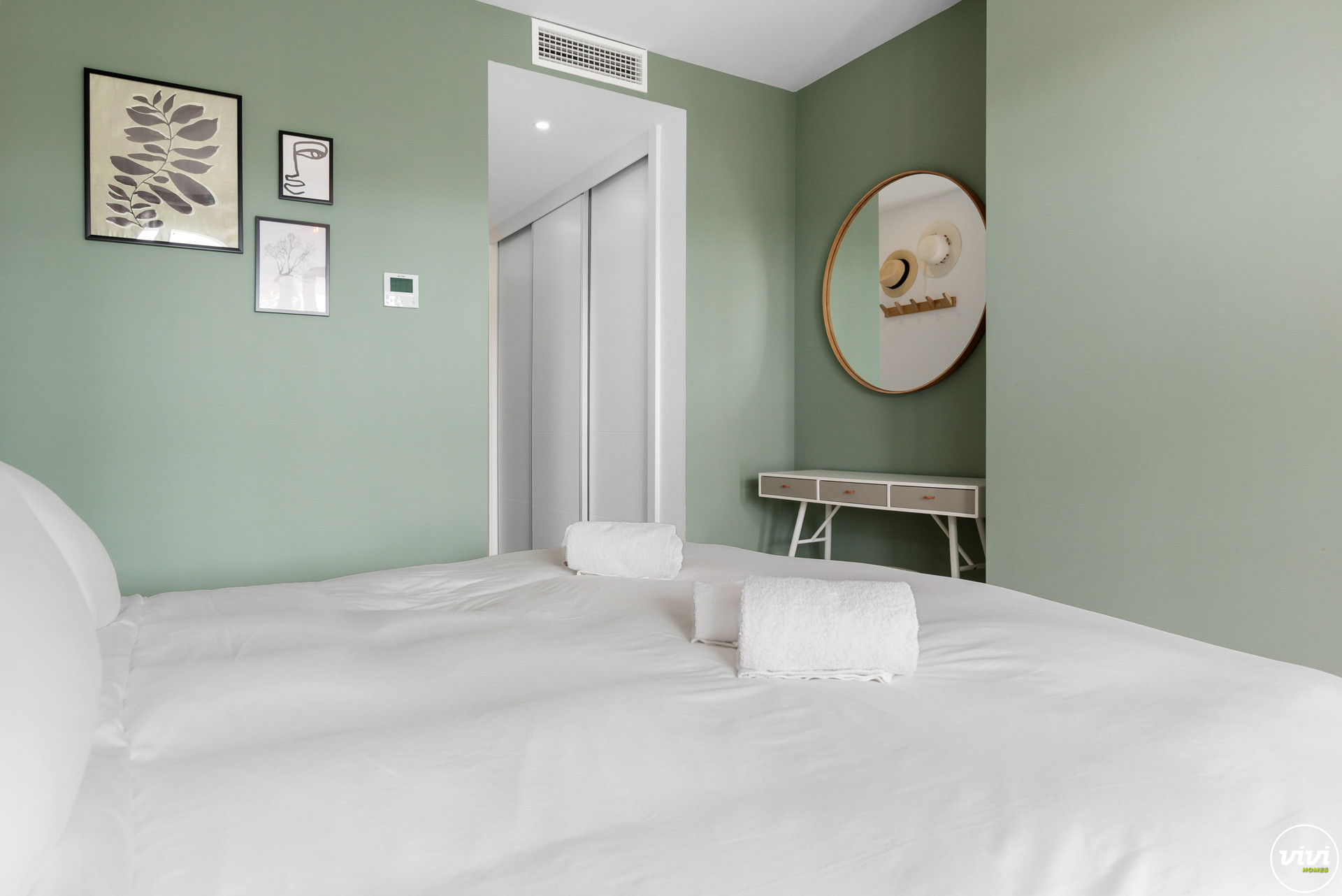 The accommodation has a fully equipped kitchen and air conditioning.