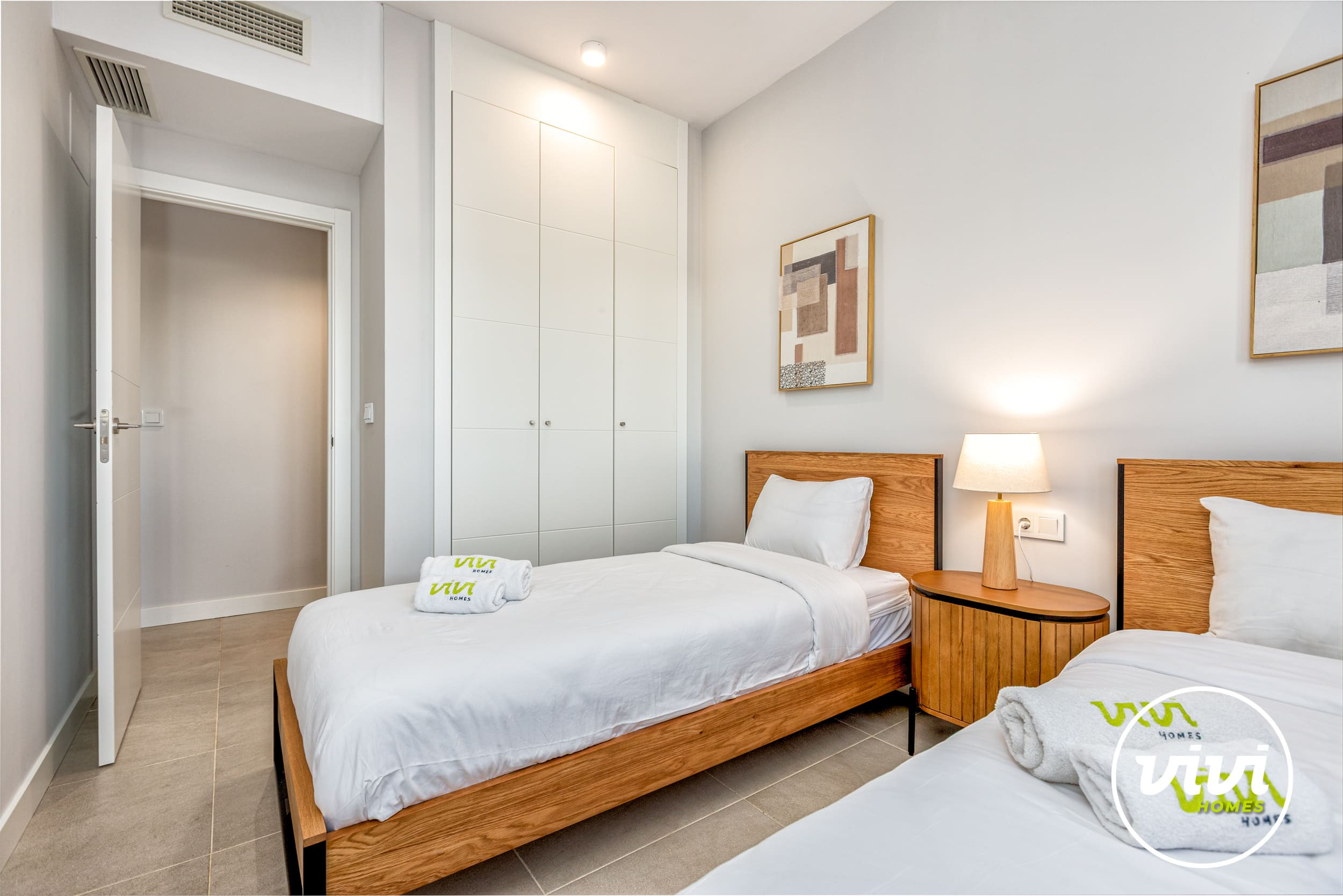 Met ruimte voor 4 gasten beschikt dit appartement over twee slaapkamers, twee badkamers en een geweldig overdekt balkon.