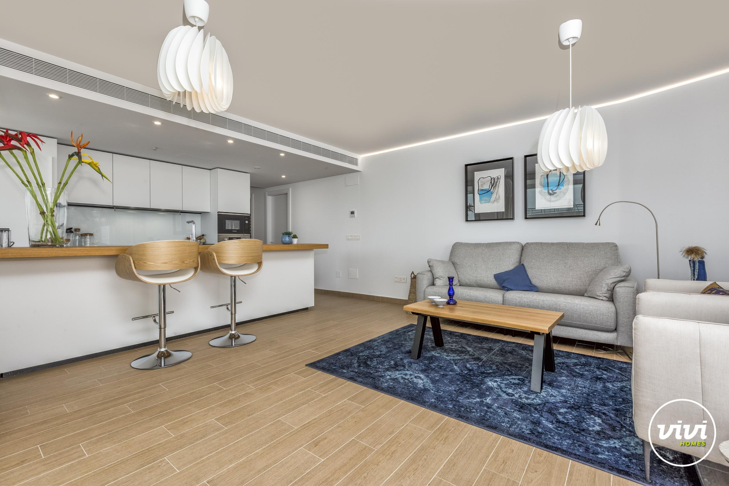 Het appartement biedt een open woonkamer met een mooie eethoek naast de keuken, die volledig is uitgerust. Zowel vanuit de keuken als vanuit de twee slaapkamers kunt u genieten van adembenemende uitzichten over de stad en de zee. Het appartement beschikt over een lichte badkamer met gemakkelijke toegang. Om het uitzicht ten volle te genieten, kunt u ontspannen op het terras in een van de comfortabele loungestoelen.