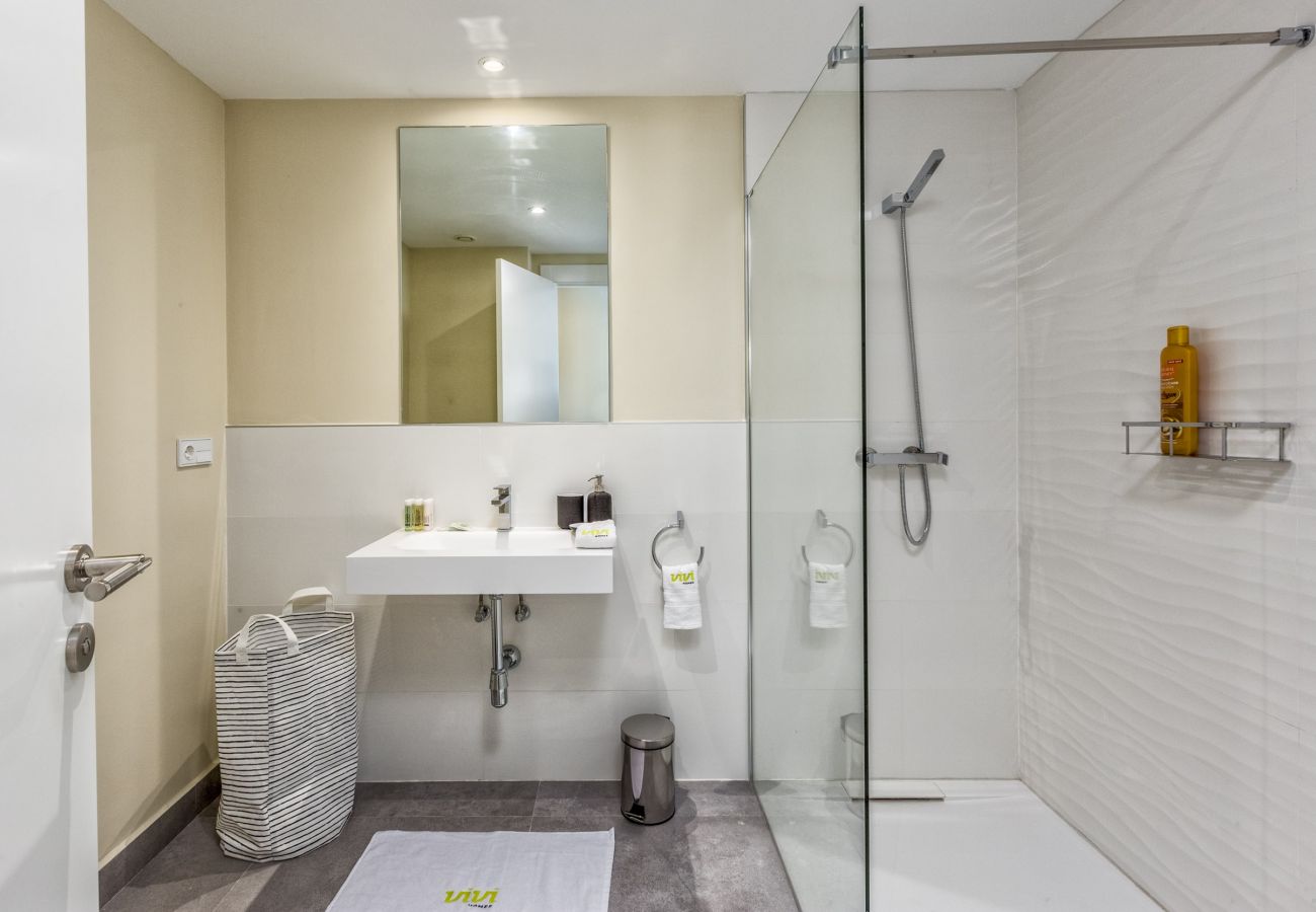 Het appartement biedt een open woonkamer met een mooie eethoek naast de keuken, die volledig is uitgerust. Zowel vanuit de keuken als vanuit de twee slaapkamers kunt u genieten van adembenemende uitzichten over de stad en de zee. Het appartement beschikt over een lichte badkamer met gemakkelijke toegang. Om het uitzicht ten volle te genieten, kunt u ontspannen op het terras in een van de comfortabele loungestoelen.