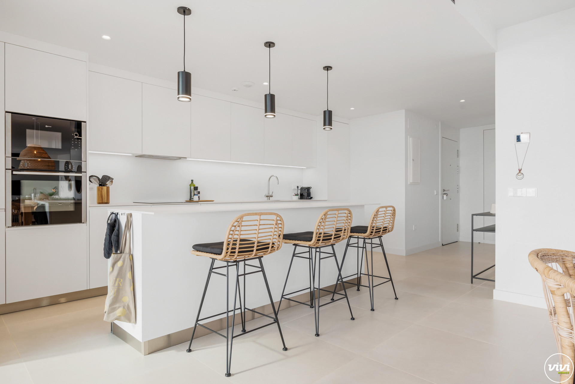 Het appartement heeft een volledig uitgeruste keuken en airconditioning.