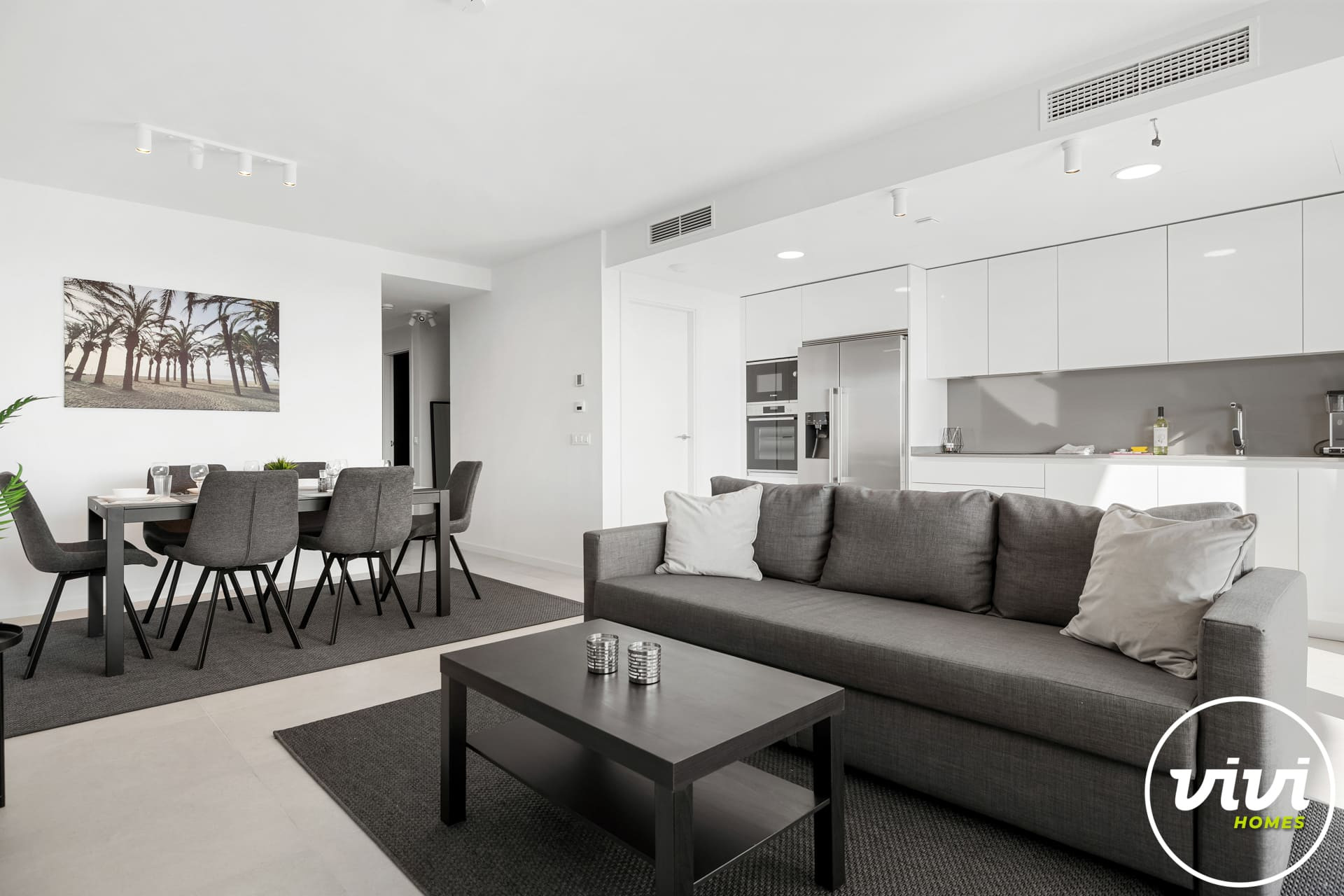 Dankzij de locatie en open ruimtes is het appartement de hele dag gevuld met natuurlijk licht, wat een warme en uitnodigende sfeer creëert. Binnen vind je gezellige slaapkamers, samen met een comfortabele woonkamer die perfect is om te ontspannen na een dagje uit. De keuken is zeer modern en volledig uitgerust. Het terras heeft een grote zitruimte waar jij en je vrienden of familie kunnen genieten van een drankje met uitzicht.