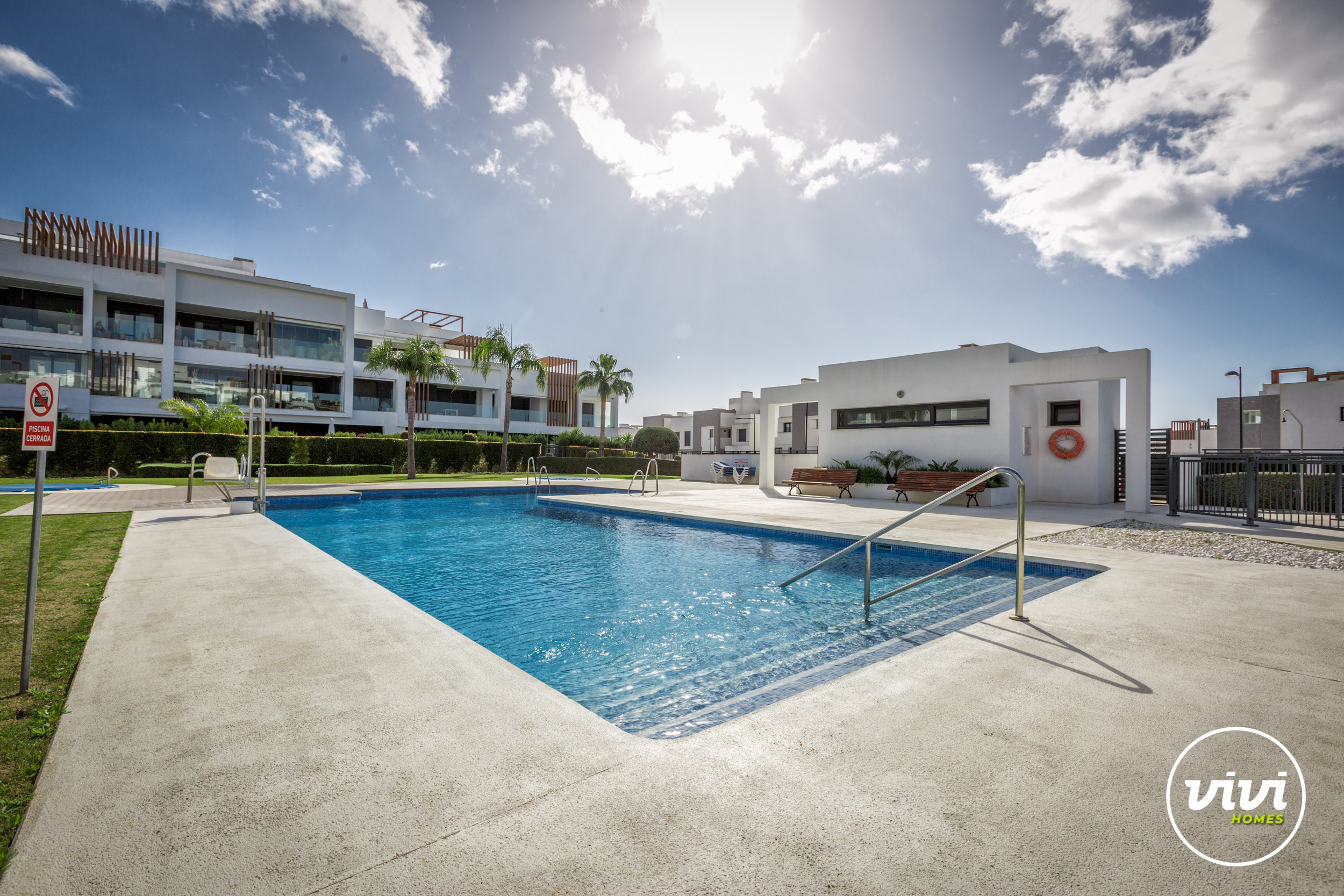 Vanuit de tuin is er ook gemakkelijk toegang tot een gemeenschappelijk zwembad, jacuzzi's en een kinderbad. Ideaal voor een dag waarop je wilt ontspannen.