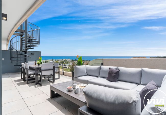 This stylish penthouse with amazing views in Estepona accommodates 6 guests in 3 bedrooms with 2 bathrooms.