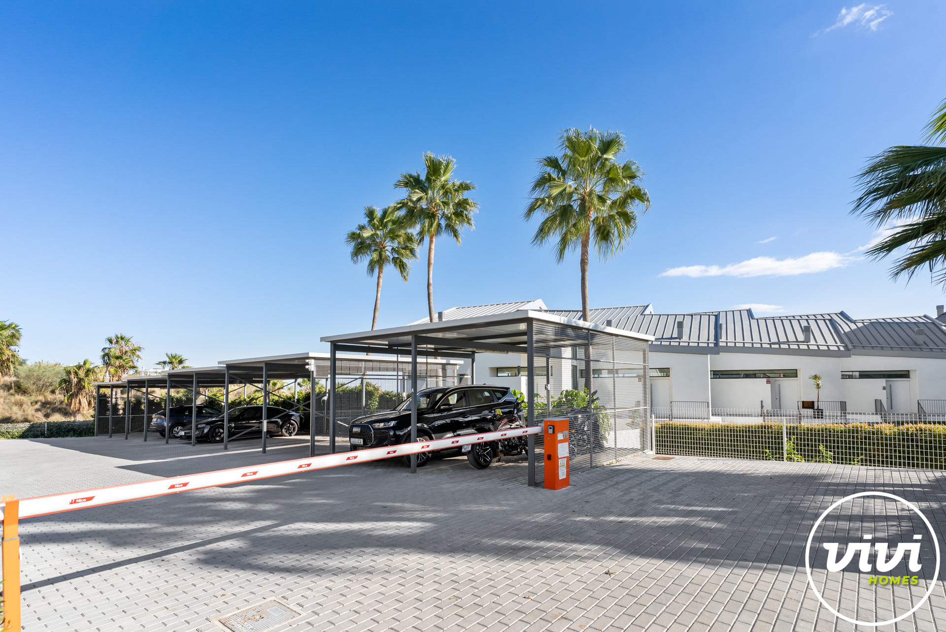 Covered parking near the building